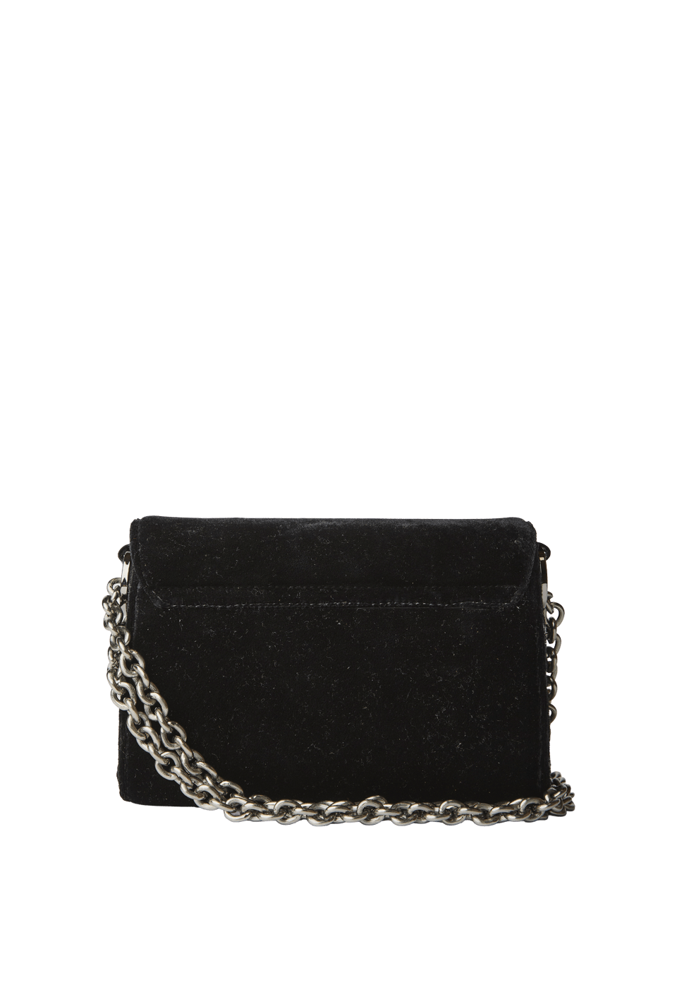 Bordada no veludo com fios de lurex, que adicionam brilho sutil e enriquecem a textura da bolsa com um efeito sofisticado e delicado, esta bolsa se destaca pela elegância intensa e pelo apelo sensorial do material. A superfície bordada cria jogos sutis de luz e sombra, o que confere sofisticação e presença. O grande destaque é o broche aplicado na aba frontal, trabalhado como um elemento joalheiro, que adiciona brilho, personalidade e um ar de exclusividade. A corrente complementa o design com força e refinamento, equilibrando delicadeza e impacto visual. Uma bolsa com estilo vintage pensada para ocasiões especiais, que transforma o acessório em protagonista e traduz um estilo marcante, feminino e confiante.