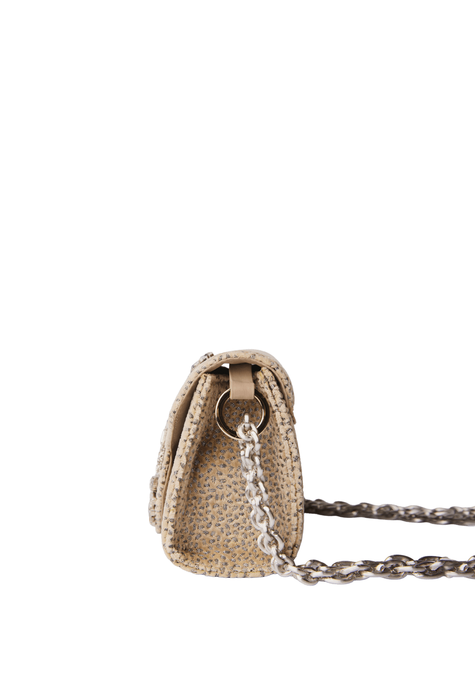 Produzida em veludo de toque macio e acabamento profundo, esta bolsa se destaca pela elegância intensa e pelo apelo sensorial do material. A superfície aveludada cria jogos sutis de luz e sombra, o que confere sofisticação e presença. O grande destaque é o broche aplicado na aba frontal, trabalhado como um elemento joalheiro, que adiciona brilho, personalidade e um ar de exclusividade. A corrente complementa o design com força e refinamento, equilibrando delicadeza e impacto visual. Uma bolsa com estilo vintage pensada para ocasiões especiais, que transforma o acessório em protagonista e traduz um estilo marcante, feminino e confiante.