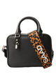 Com linhas definidas em formato e estrutura, esta bolsa nasce de uma construção geométrica e precisa. Produzida em couro, ela sustenta sua forma com elegância, um desenho quadrado e impecável. Sua superfície lisa evidencia o rigor do acabamento. As alças de mão reforçam o caráter clássico da peça, enquanto a alça transversal removível em tear com estampa de onça introduz contraste e personalidade. A combinação entre couro e tecido cria um diálogo atual, sem perder a atemporalidade. As ferragens metálicas em tom dourado surgem de forma sutil, pontuando a peça com brilho na medida certa. O fechamento superior em zíper acompanha o desenho reto da bolsa, oferece segurança sem interferir na estética limpa. Uma bolsa clássica para quem aprecia forma.