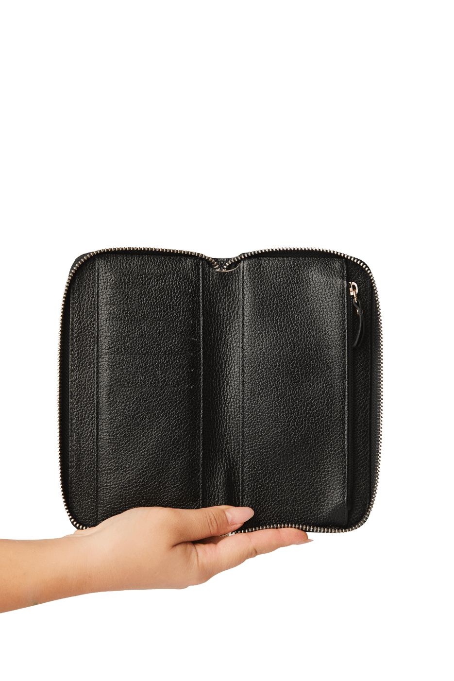 Toda em couro, esta carteira une praticidade no dia a dia. O fecho em zíper garante segurança, enquanto o interior revela duas divisórias para documentos — uma delas com zíper — e espaço para até 8 cartões. Um acessório que traduz identidade e bom gosto em cada uso.